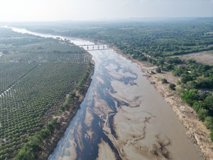VERACRUZ | Usuarios de las redes sociales denunciaron y expusieron la contaminación por hidrocarburo que cubrió parte del río Pantepec, al norte de Veracruz y que ya alcanzó al río Tuxpan, pero fue el empresario Ricardo Salinas Pliego quien grabó y denunció el grave derrame de petróleo en el Río Tuxpan, en el estado de Veracruz y lo convirtió en viral; desde su helicóptero Salinas Pliego fustigó a la llamada “cuarta transformación” por -dijo- “envenenar al país”.