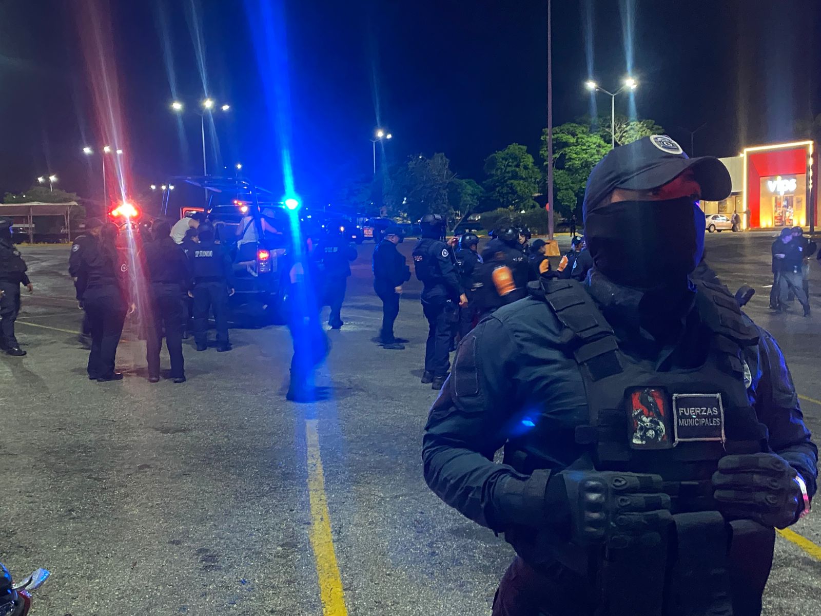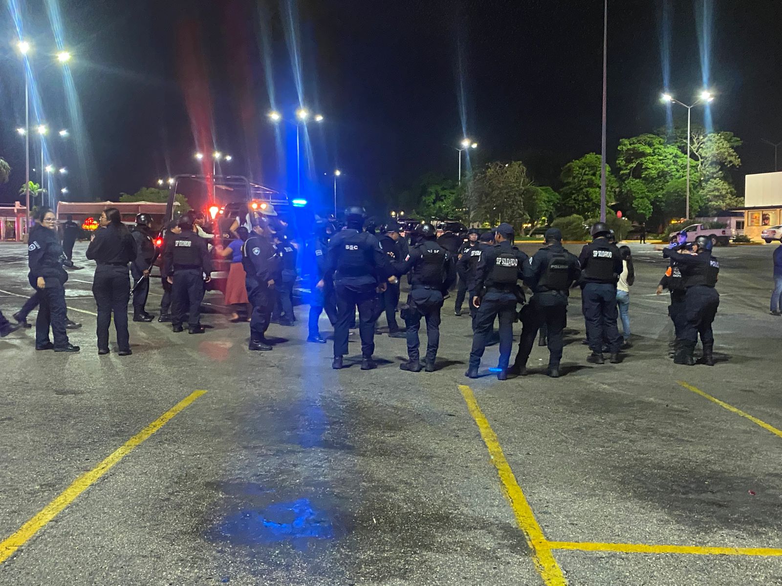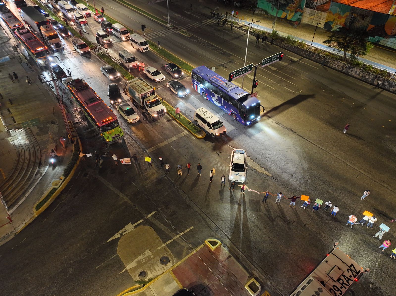 Fue alrededor de las 11 de la noche cuando elementos de la Policía Municipal hicieron uso de la fuerza pública para liberar la vía que se encontraban bloqueada en sus cuatro carriles, a la altura de la plaza Centro Maya, desde hace tres horas.