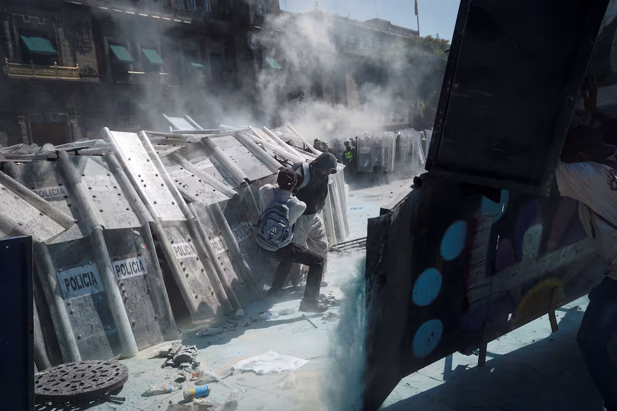 La mayoría de los asistentes eran personas que superan los 30 años y los jóvenes eran la minoría. Salvo en el tramo final ya en el Zócalo, cuando un grupo de jóvenes encapuchados lanzaron piedras y botellas contra el Palacio Nacional, amurallado como es habitual durante las protestas. Llegaron a derribar algunas vallas y se enfrentaron con la policía. Por lo demás, la jornada transcurrió de modo pacífico. Entre los lemas más repetidos sobresalieron los insultos a la presidenta, la reivindicación de “no somos inteligencia artificial” y las exigencias de “fuera Morena”.