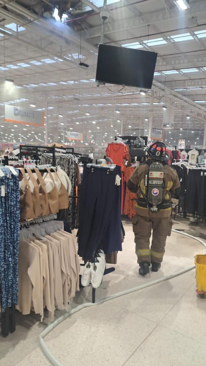 De acuerdo con informes extraoficiales, el conato de incendio se registró en el área de ropa de este supermercado.