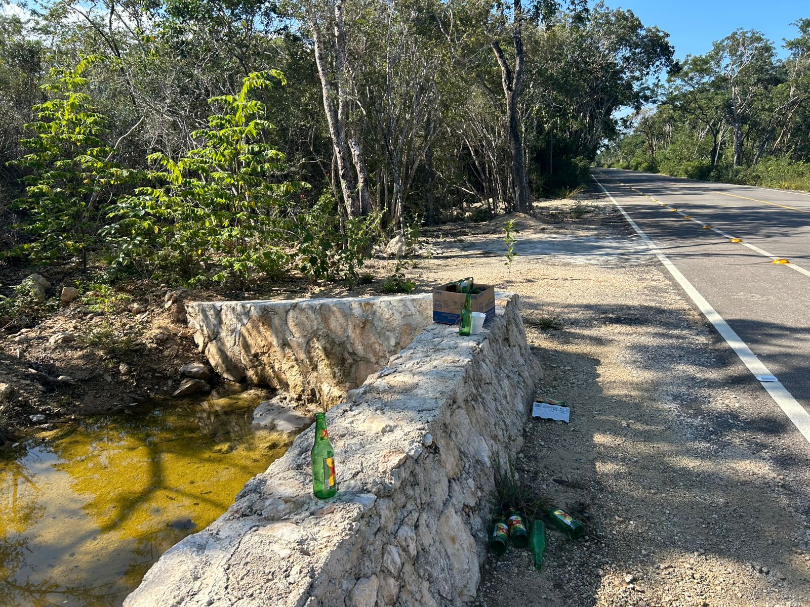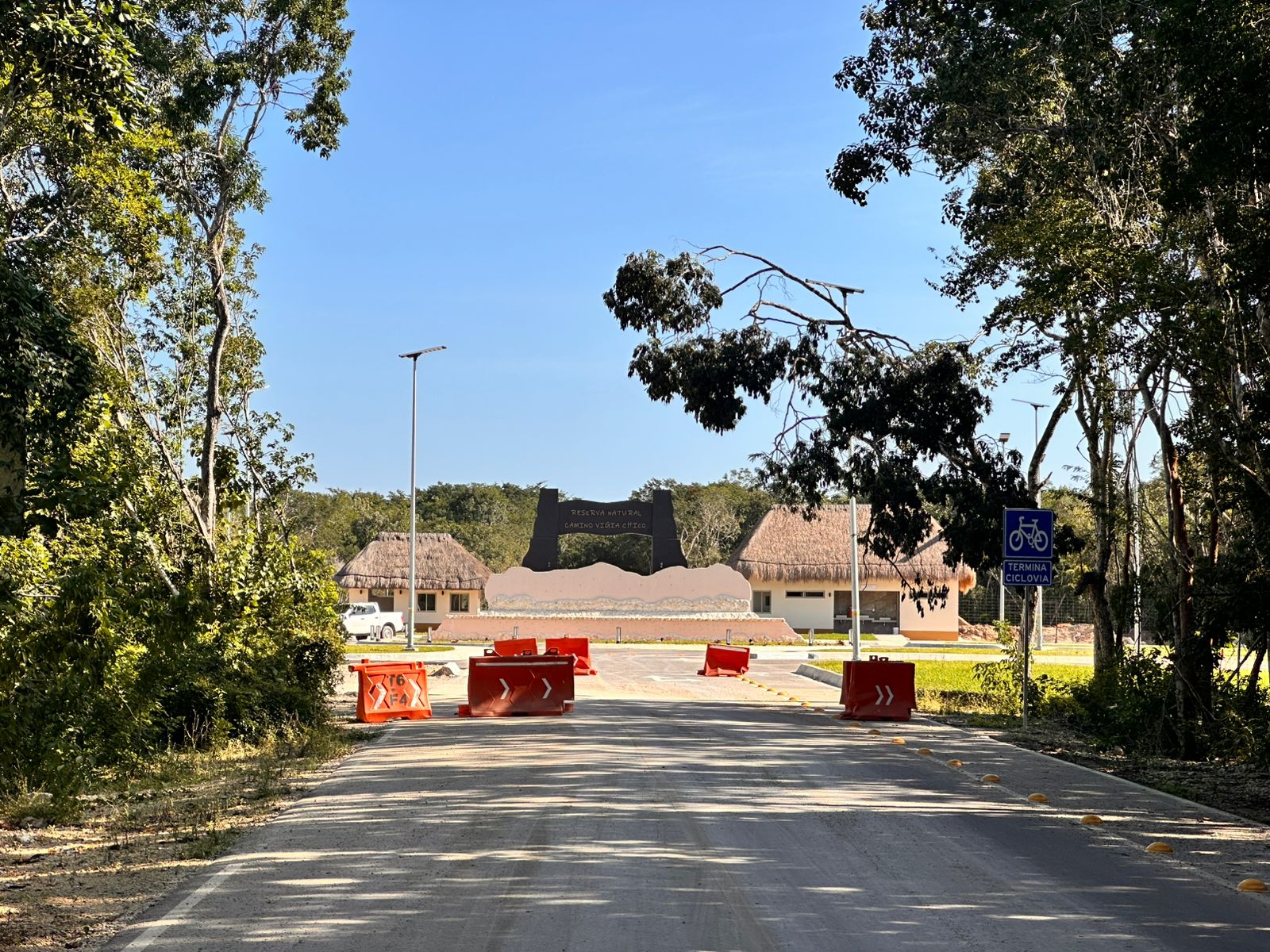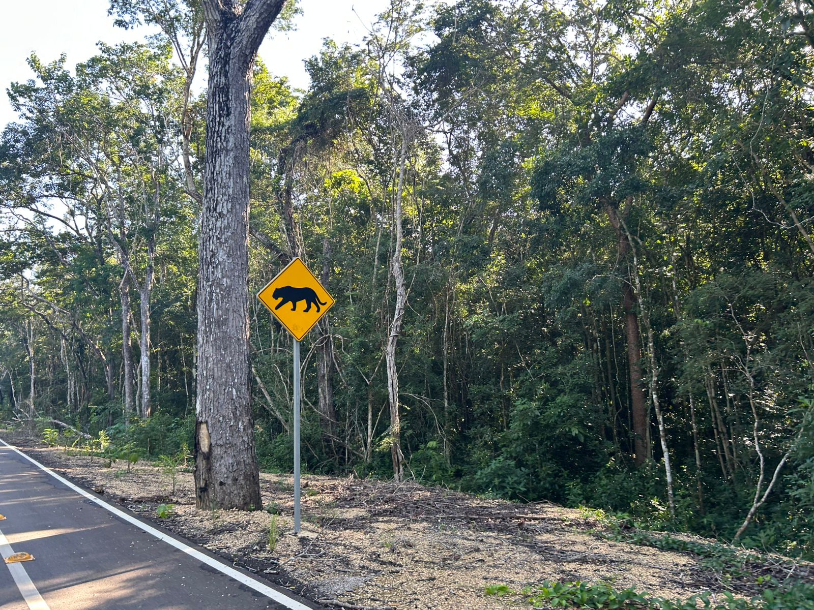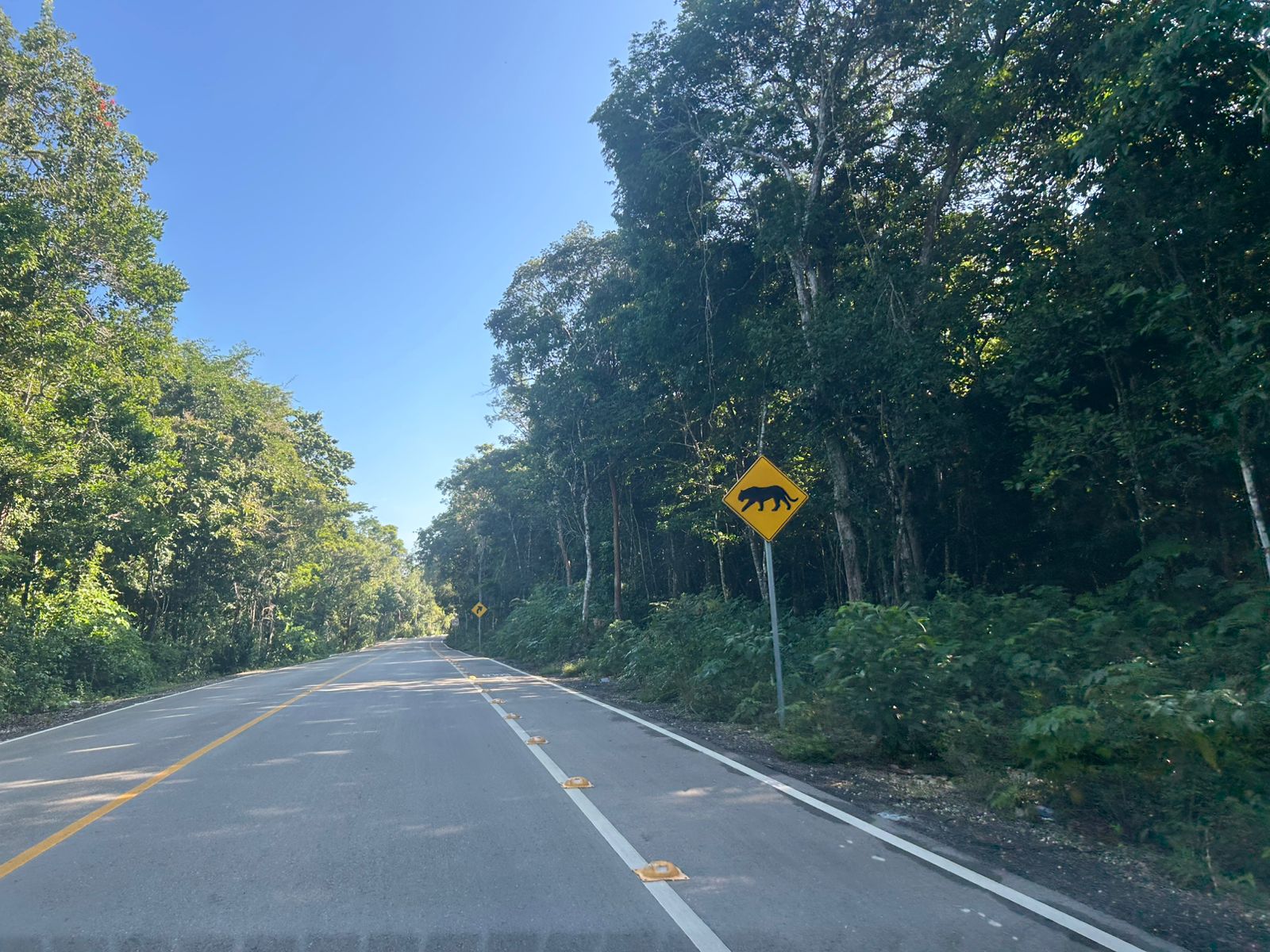 Durante el recorrido por más de 25 kilómetros libres de acceso, Reporte Maya constató, señalécticas, obras de pasos naturales de agua y limitación de las mismas con guarniciones, y una intensa reforestación de amos lados de la carretera.
