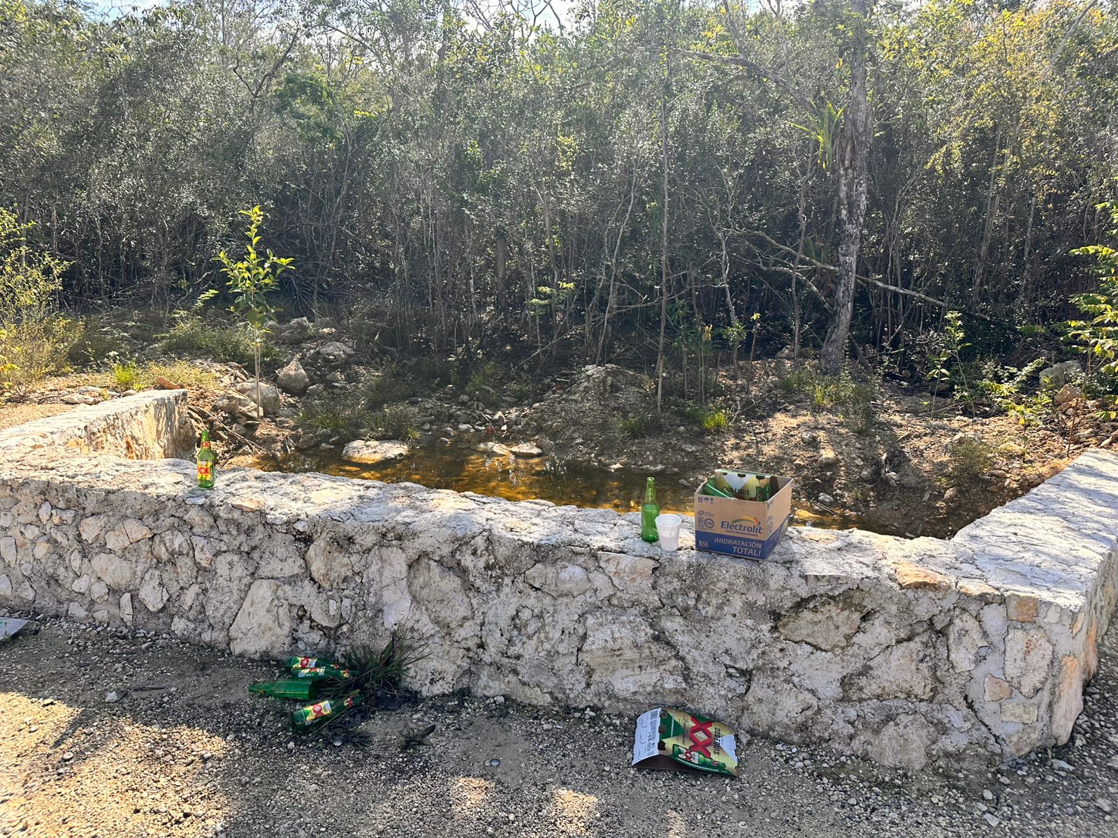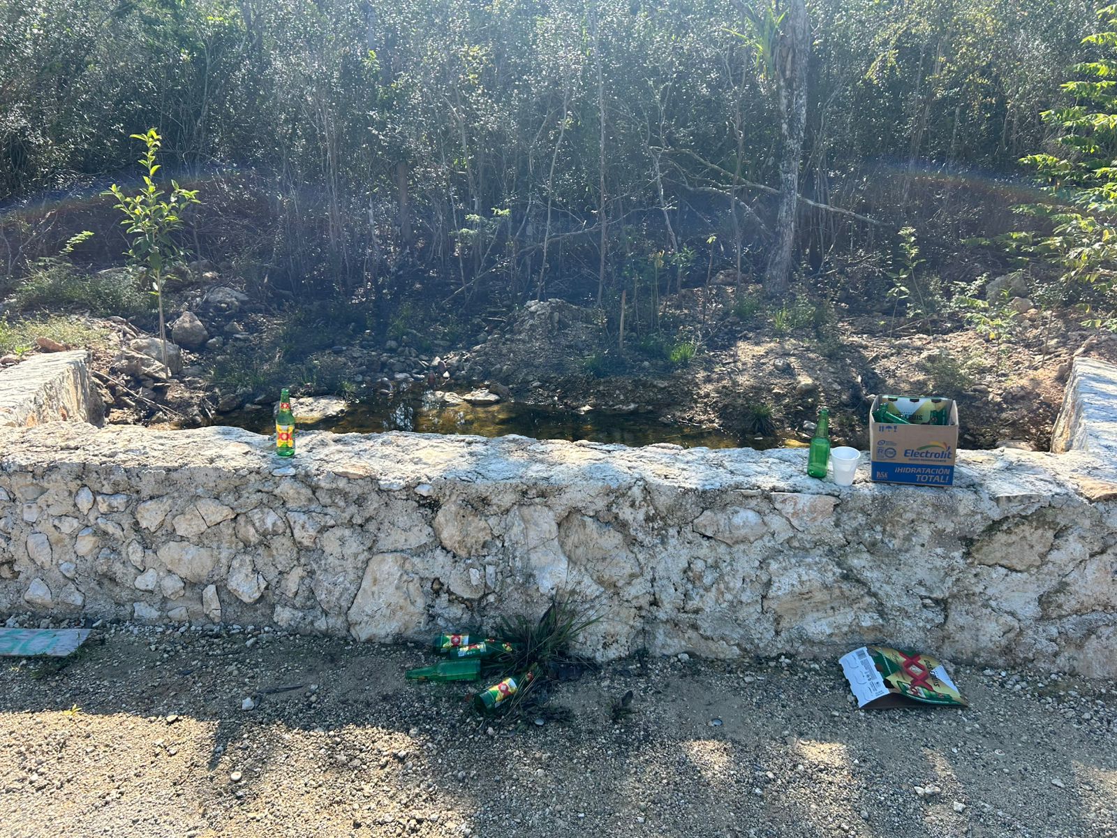También se constató que la actividad humana es la que esta impactando el entorno ecológico ante la acumulación de basura y lugares que utilizan los lugareños para consumir bebidas embriagantes ante la nula vigilancia en la zona.