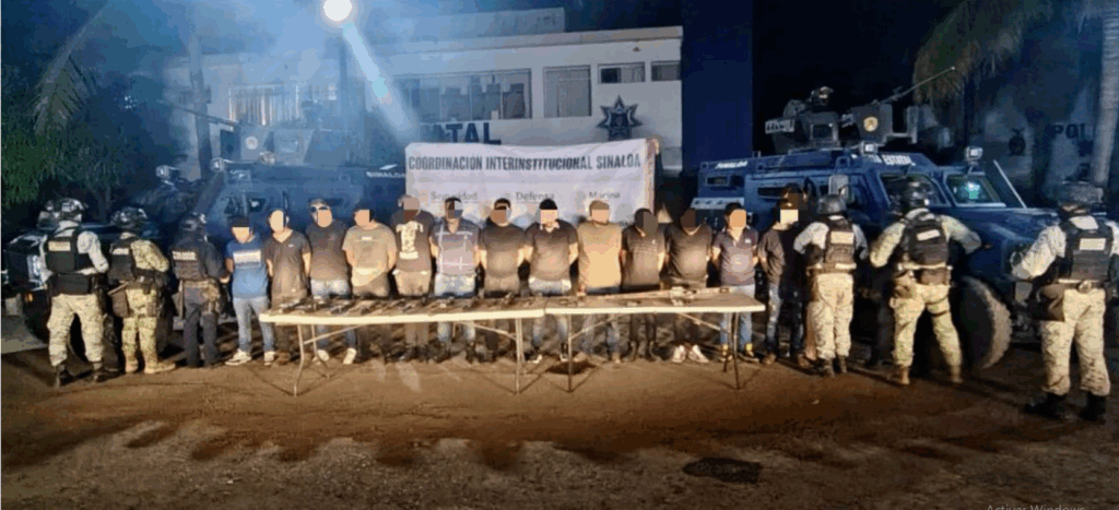 Añadió que en Navolato fueron capturadas 14 personas, a quienes se les aseguraron 13 armas largas y una ametralladora, “evitando así su uso contra la población y contra las autoridades”.