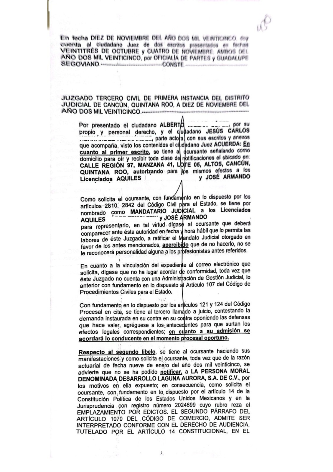 Y es que, de acuerdo a la carpeta de investigación FGE/QROOCAN/UAT/11/5011/2019, desde hace seis años el terreno contiguo a la Torre Aurora está en litigio, debido a la posesión que se disputan dos particulares y por lo tanto no podía ser vendido por ninguno de ellos mientras la autoridad correspondiente no determine a quién pertenece la posesión legal del predio.