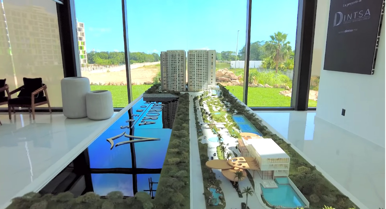 Hoy, donde ya se anuncia la construcción de amenidades como albercas, gimnasio, golf virtual, bar sky view, boliche, snack bar, ciclovía, tenis, trampolines, lobby, jacuzzi, zona trx, business center, minigolf, padel, juegos infantiles, pool bar, spa, streaming room, skate park, asadores, área comercial, asoleadores, ludoteca, salón de eventos, junior club, pet park, cancha multiusos, área de picnic y salón de fiestas infantiles, entre otras obras de beneficio para quienes compren un departamento en la Torre Aurora, puede observarse que el terreno en litigio ya pertenece a la inmobiliaria que comercializa los casi 400 departamentos de lujo.