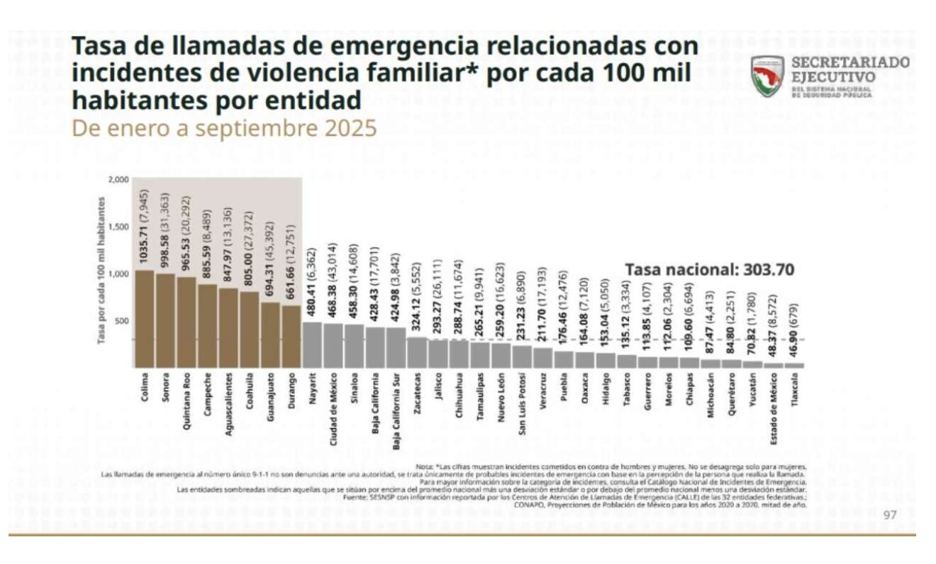 Asimismo, el estado ocupa el tercer lugar nacional en llamadas de emergencia relacionadas con incidentes de violencia familiar, con 20,292 reportes; al igual que en la tasa de corrupción de menores con 81 casos.