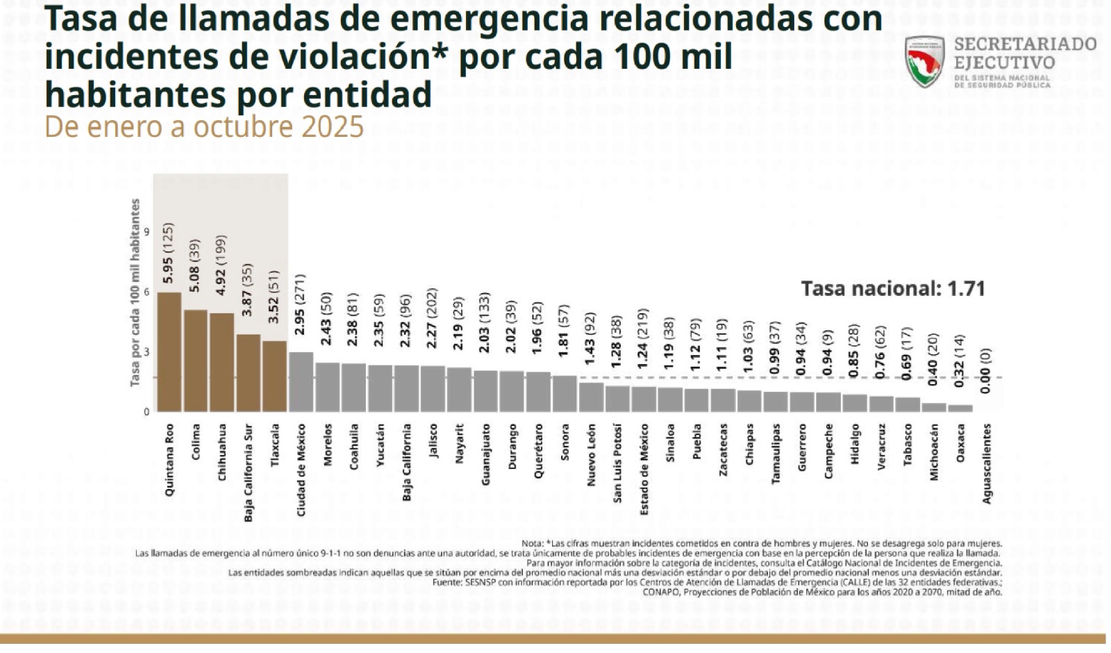 Digo esto, porque el Secretariado Ejecutivo del Sistema Nacional de Seguridad Pública, ya publicó las cifras mensuales correspondientes a la incidencia delictiva de octubre, donde Quintana Roo ocupa lugares alarmantes en relación con cada 100 mil habitantes; lo que manifiesta que aún hay pendientes con este sector de la sociedad.