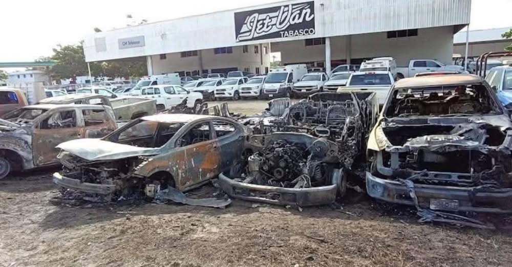 En las primeras horas se reportó la colocación de artefactos para inutilizar vehÃculos en movimiento, pero el evento mayor ocurrió en una empresa automotriz ubicada en la autopista Villahermosa-Cárdenas, donde fueron calcinadas ocho unidades. En la capital también se reportó el incendio de dos vehÃculos más.