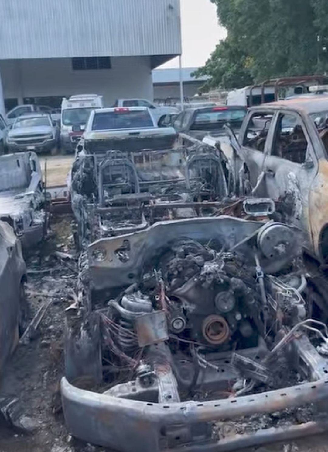 Se reportó la colocación de artefactos para inutilizar vehÃculos en movimiento, pero el evento mayor ocurrió en una empresa automotriz ubicada en la autopista Villahermosa-Cárdenas, donde fueron calcinadas ocho unidades. En la capital también se reportó el incendio de dos vehÃculos más