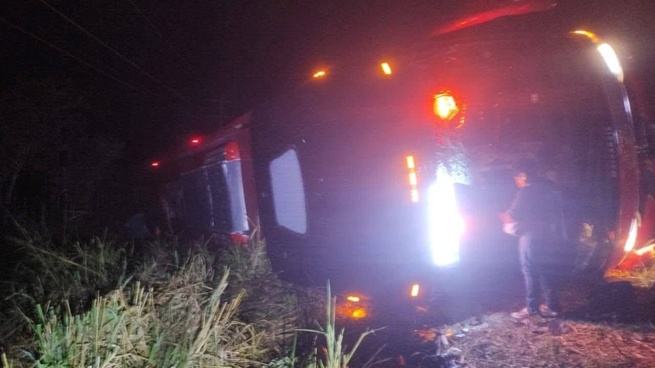 CHETUMAL | Un autobús de pasajeros que circulaba por la carretera federal entre Nachicocom y Chetumal volcó la noche de este jueves, dejando un saldo preliminar de más de 15 personas lesionadas, entre ellas varios menores de edad y una mujer embarazada.
