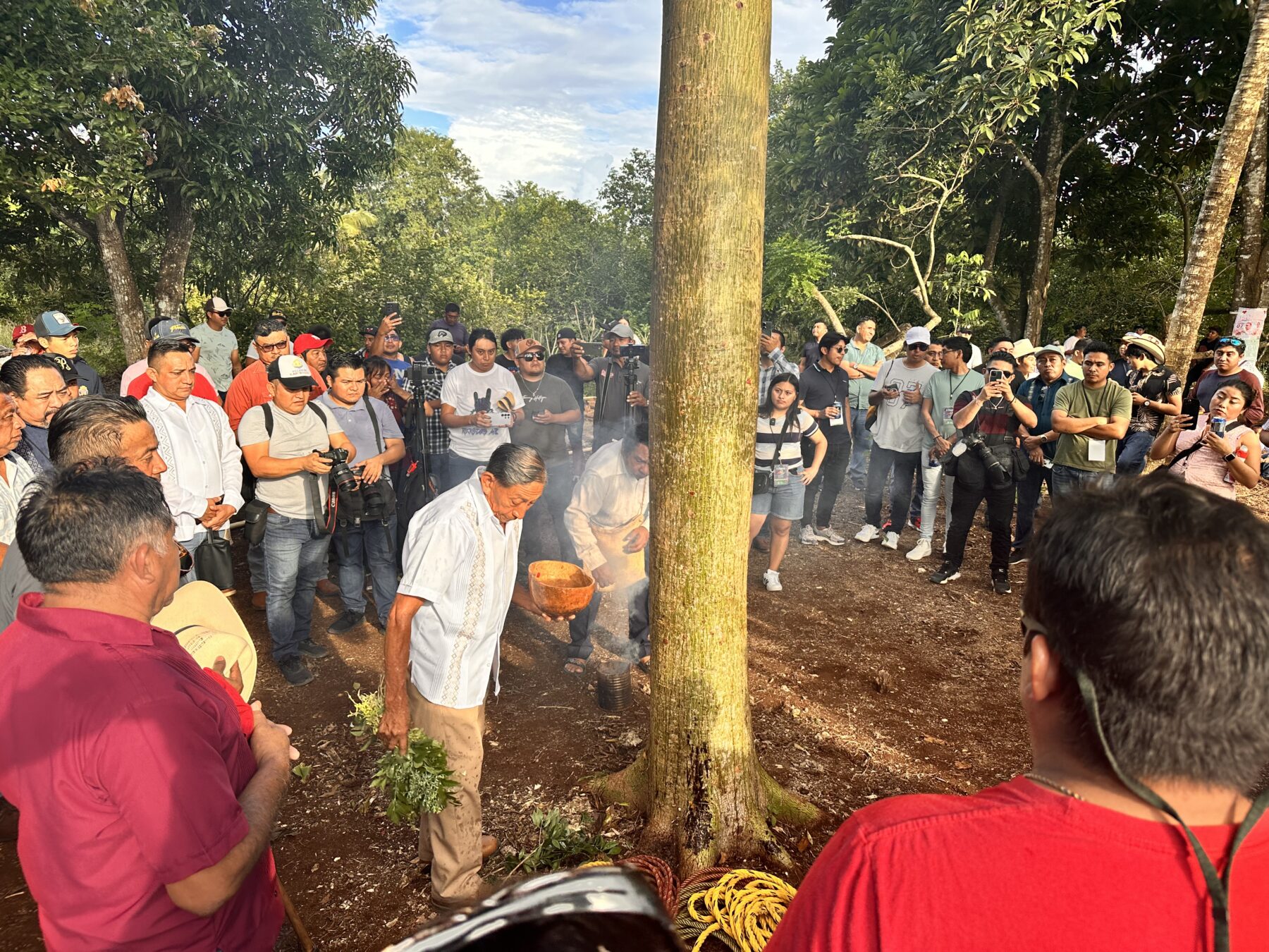 Con la bendición de un sacerdote maya, la presencia de los diputados de la Feria y las autoridades municipales, el pueblo acudió al corte del árbol de la ceiba, donde el primer hachazo lo dio el presidente municipal Josué Nivardo Mena Villanueva, para luego seguir las demás personas hasta el momento de cortarlo por completo.