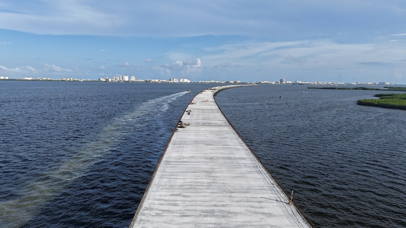 CANCÚN | El Gobierno Federal a través de la Secretaría de Infraestructura, Comunicaciones y Transportes (SICT), informó que a días finales de diciembre podría quedar inaugurado el Puente sobre la Laguna Nichupté con una longitud de 11.2 kilómetros, conectará de manera estratégica la zona hotelera de Cancún con el Boulevard Colosio y las Avenidas Tulum, Kabah y Bonampak.
