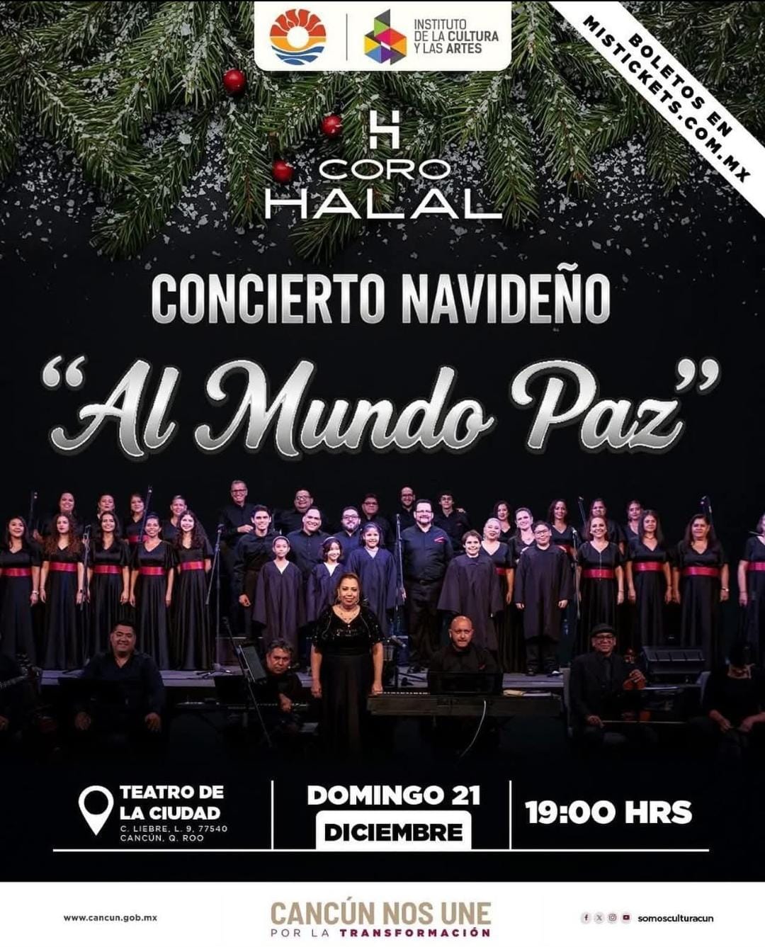 CANCÚN | El Coro Halal presentará este 21 de diciembre a las 19:00 horas su concierto especial de temporada en el Teatro de la Ciudad, un evento que busca aportar a la vida cultural de Cancún y ofrecer un mensaje de paz en vísperas de Navidad.