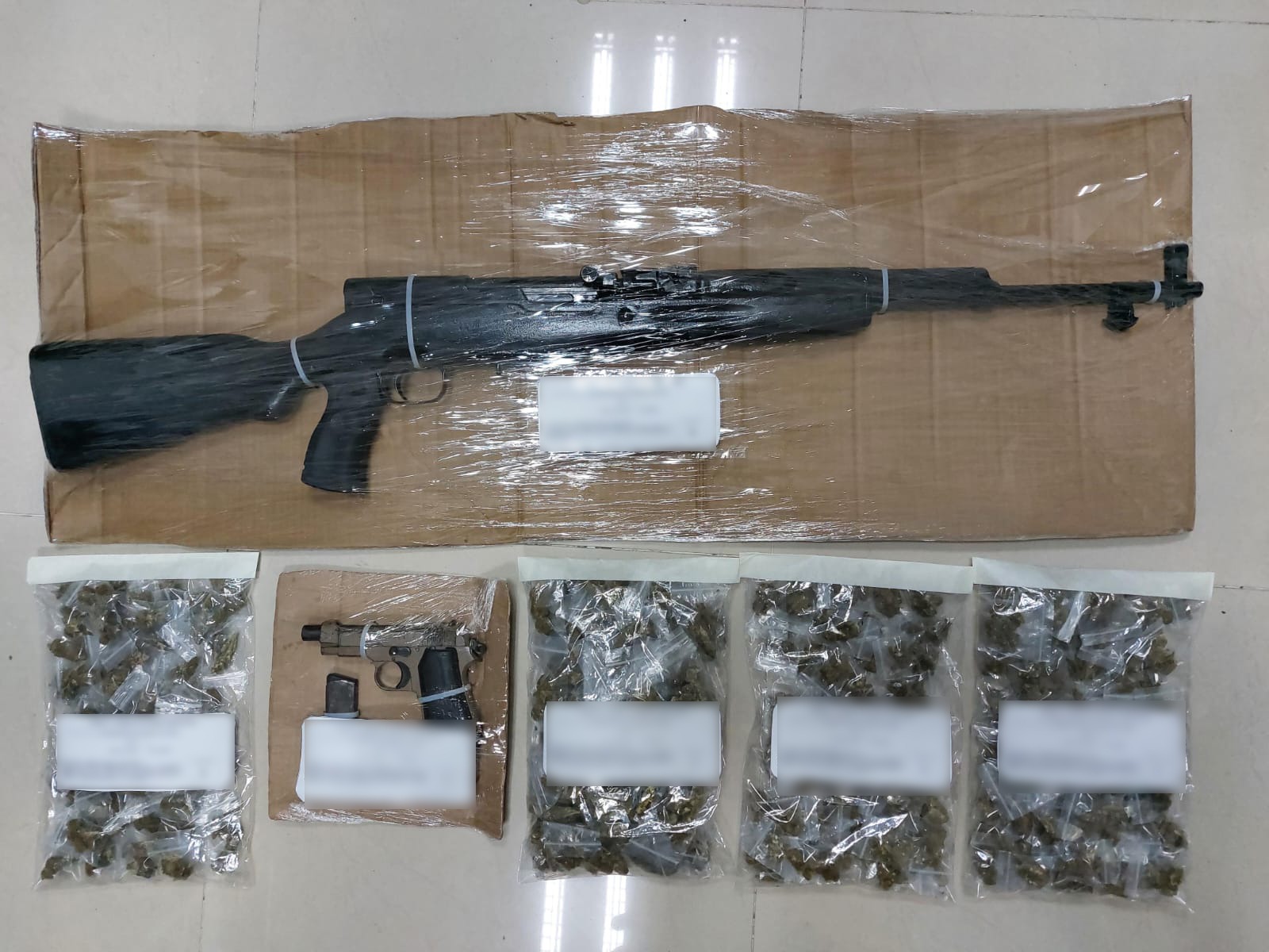Los otros detenidos son: Aarón “N”, Kevin Orlando “N” y Ever Eladio “N”, a quienes les aseguraron, durante un operativo realizado en la en la calle 33 Sur de la colonia Colonos Cuzamil, sustancias similares a marihuana, así como un arma de fuego larga y una corta, calibre 9 mm, con cargador abastecido y cartuchos útiles.