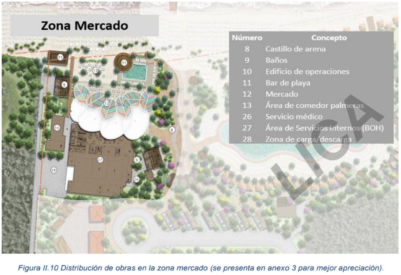 “El Proyecto comprende la preparación, construcción, operación y mantenimiento de un Club de Playa con una capacidad de 4,000 turistas diarios. Este espacio ofrecerá amplias experiencias y actividades de día, mediante la infraestructura diseñada, que incluirá: Restaurantes, Albercas con diferentes profundidades, Baños con regaderas, Accesos directos a la playa y Estructura de apoyo variada”, señala el documento publicado por la Secretaría del Medio Ambiente y Recursos Naturales (Semarnat).