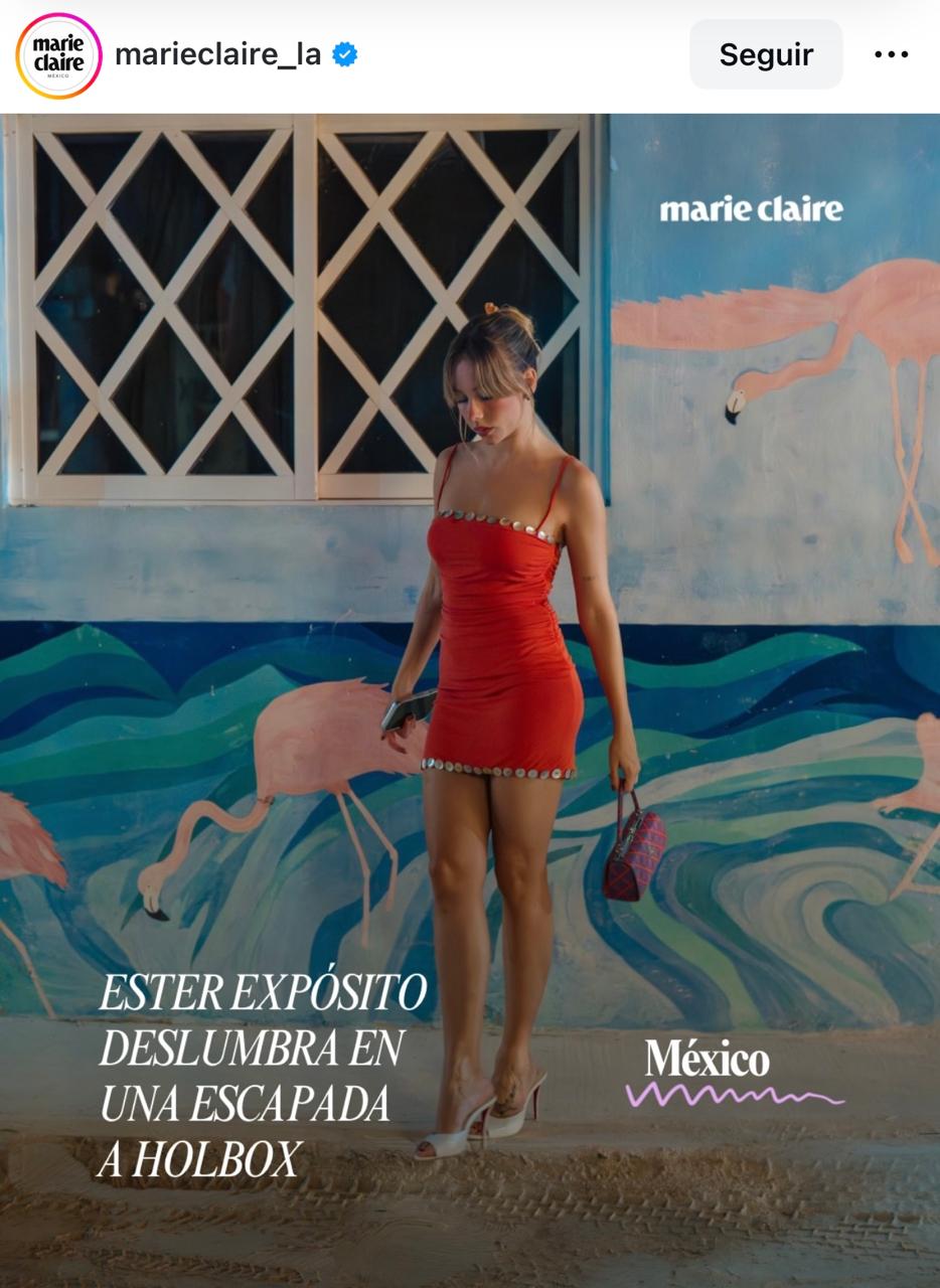 De acuerdo con la firma ‘Marie Claire” (@marieclaire_la), Ester Expósito “elige Holbox para desconectar y confirma por qué la isla es el destino más deseado del Caribe Mexicano.