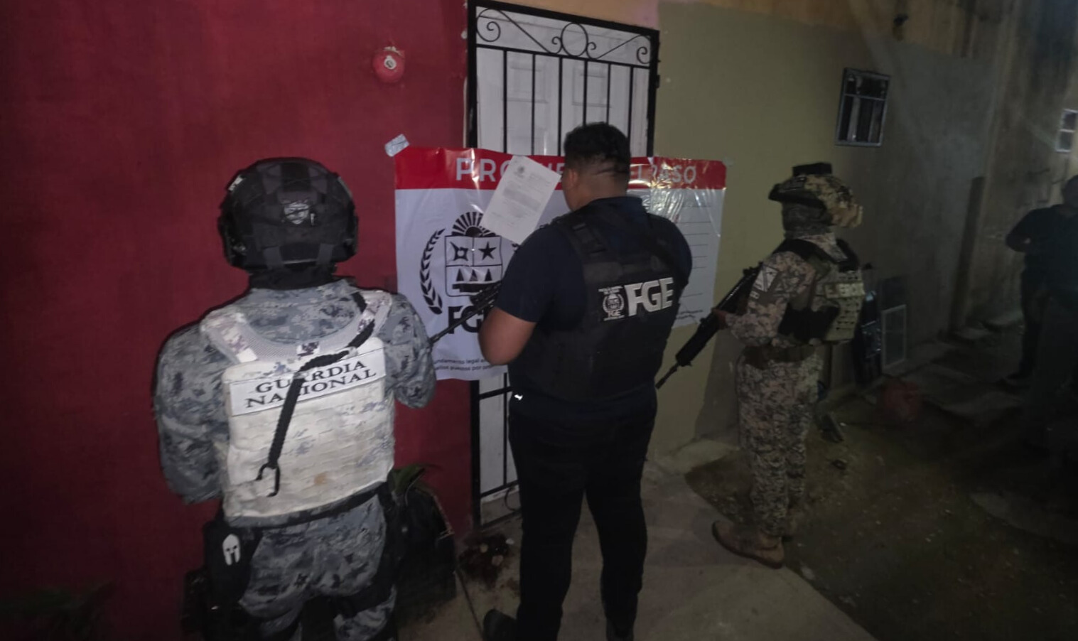El segundo mandamiento judicial tuvo lugar en un domicilio ubicado la avenida Paseos del Mayab con avenida Laguna Nichupté, en Playa del Carmen, donde los agentes participantes localizaron hierba seca y verde con características parecidas a la marihuana.