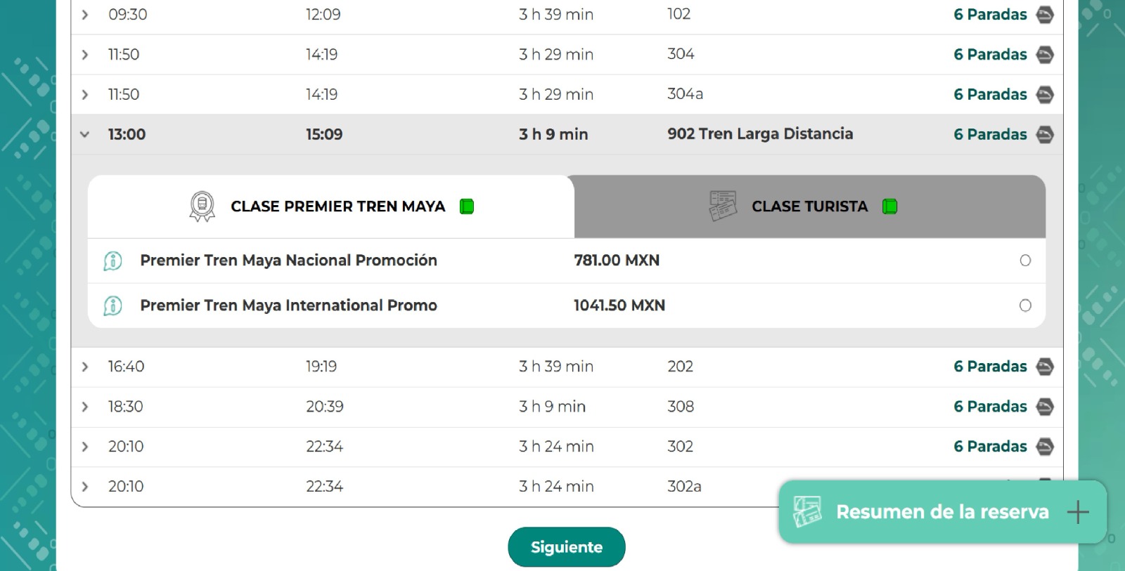 El costo por persona en clase turista nacional es de 781 pesos, en clase turista internacional es de 1 mil 041.50 pesos; hará seis paradas: Izamal, Valladolid, Chichén Itzá, Nuevo Xcán, Leona Vicario y Teya, la duración es de tres horas con nueve minutos, a diferencia del tren normal que hace de tres horas y media a cuatro horas con 20 minutos.