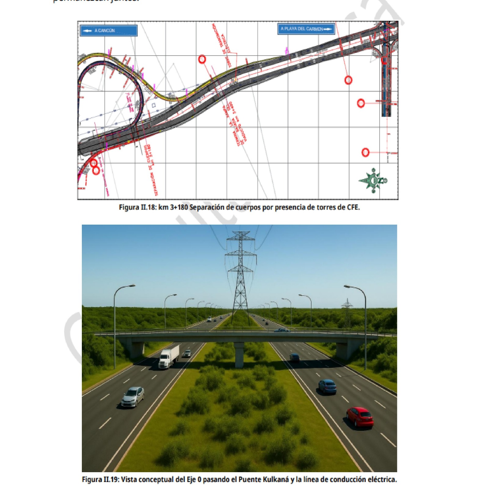 “El proyecto ocupa una superficie total de 115.023 hectáreas, de las cuales 68.512 hectáreas corresponden a vegetación forestal (selva mediana subperennifolia), por lo que requiere cambio de uso de suelo en terrenos forestales (Custf). Entre las obras principales se incluyen un viaducto de 1 mil 160 metros sobre la vía del Tren Maya, llamado el puente de la Huayacán, especifica el documento.