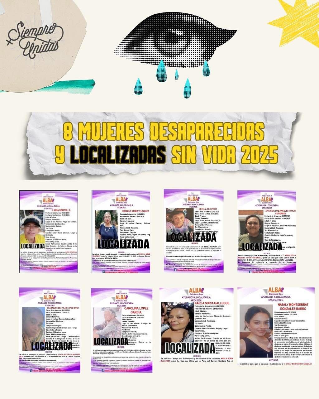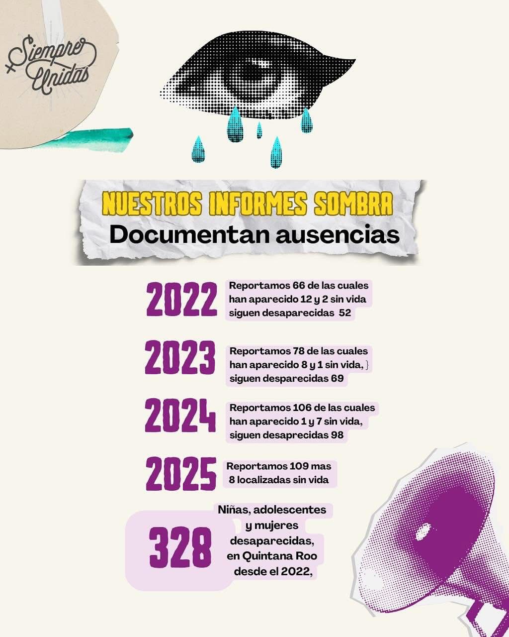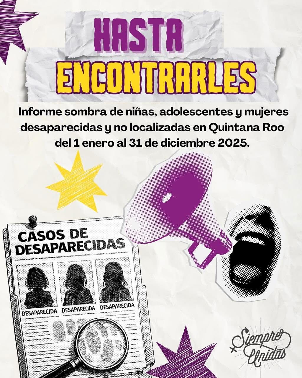 PLAYA DEL CARMEN | SIM | El colectivo feminista Siempre Unidas presentó su cuarto Informe Sombra sobre desapariciones de niñas, adolescentes y mujeres en Quintana Roo, en el que documenta 328 casos registrados desde 2022, muchos de los cuales continúan sin resolverse.