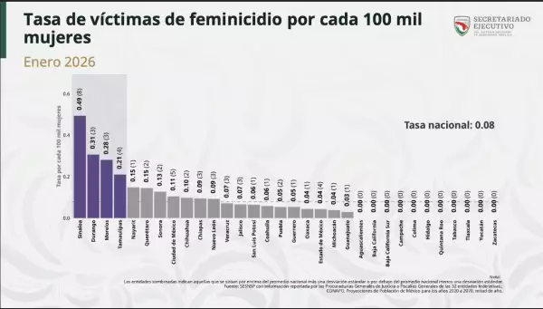 Según datos de la Secretaría de Seguridad y Protección Ciudadana, estas entidades se ubican entre las primeras 10 con mayor número de feminicidios ocurridos durante enero, mes en el que las fiscalías estatales reportaron 54 casos.