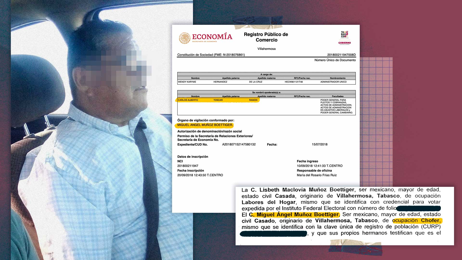 Miguel Ángel Boettiger, uno de los socios de la empresa fantasma, ha declarado en documentos oficiales desempeñarse como chofer y en sus redes sociales aparece realizando labores de logística en bailes populares. En la misma empresa fantasma ha participado como apoderado Carlos Alberto Toscar Ramón, quien a la par fue administrador de Terracota, empresa en cuya fundación participó Alejandro Márquez Rodríguez, amigo muy cercano de Adán Augusto López.