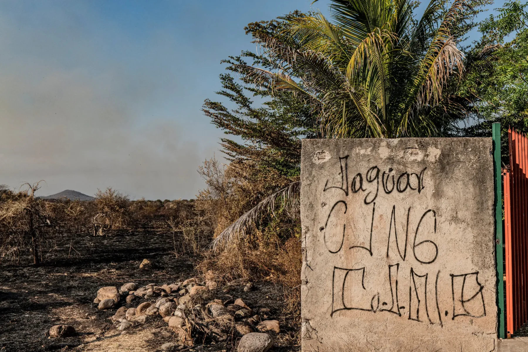 Graffiti pintado por el Cártel Jalisco Nueva Generación en una casa de El Aguaje, México, en 2022