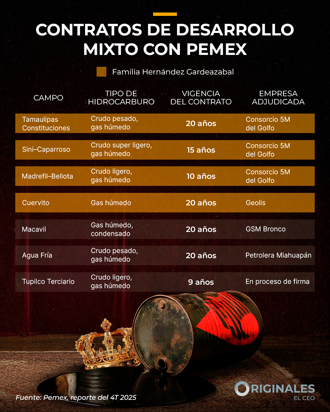 Desde las rondas de inversión de 2015 hasta los contratos mixtos de 2025, este grupo empresarial supo forjar un imperio a costa de Pemex.