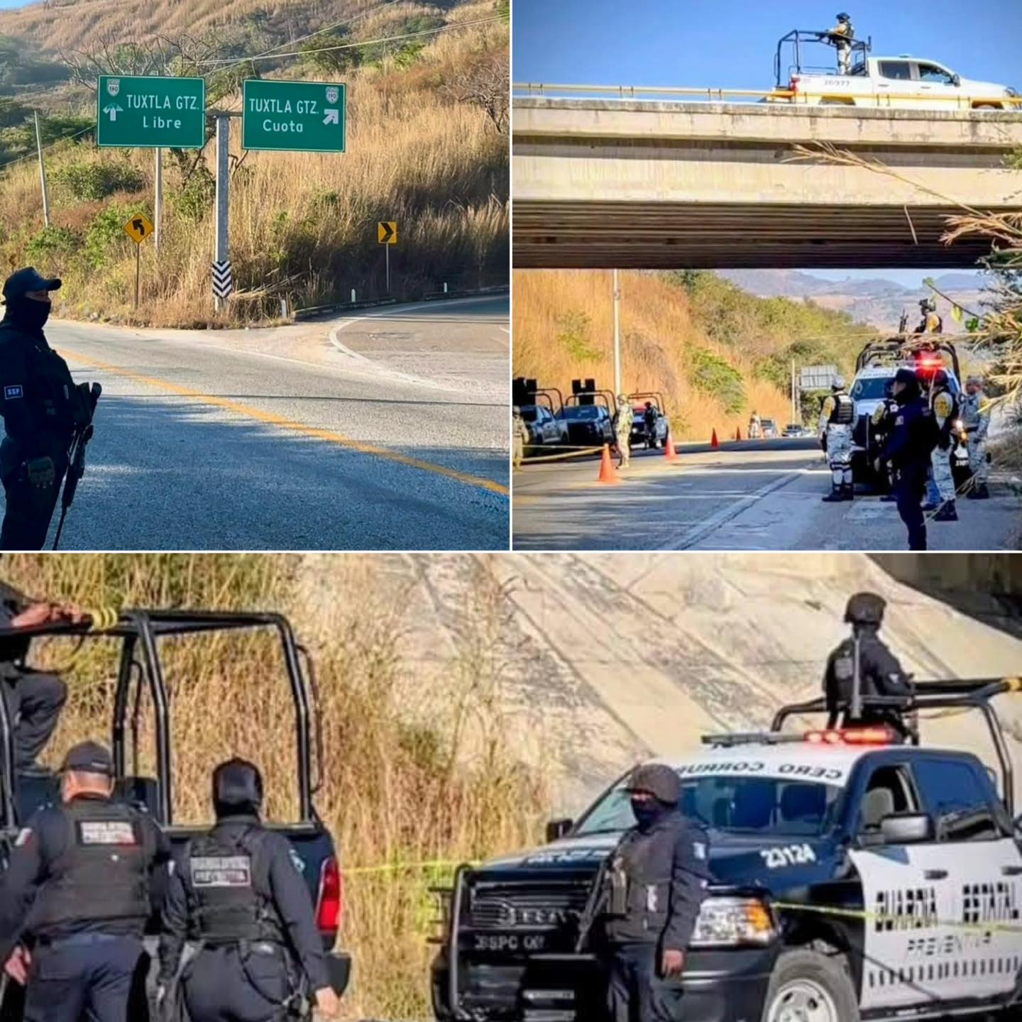 Tras el reporte, se desplegó una fuerte movilización policiaca en la zona, con la presencia de elementos de la Policía Estatal Preventiva, Fuerza de Reacción Inmediata, Policía Ministerial, Guardia Nacional y personal de la Secretaría de la Defensa Nacional (SEDENA).