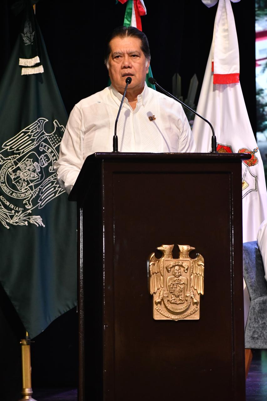Ante la comunidad universitaria presente, expuso que, en materia académica, se atendió a 28 mil 303 estudiantes, registrando un crecimiento del 1.32 por ciento, mientras que el 57 por ciento de su oferta evaluable cuenta con acreditaciones de excelencia, y el 88.5 por ciento de los cuerpos académicos se ubican en niveles de En Consolidación y Consolidado.