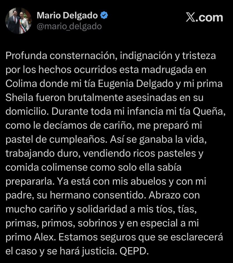 COLIMA | Tres presuntos responsables del asesinato de la prima y la tía del secretario de Educación Pública (SEP) federal, Mario Delgado, fueron abatidos durante un enfrentamiento armado con fuerzas de seguridad en el municipio de Villa de Álvarez, Colima; en los hechos, un agente de la Fiscalía estatal resultó herido, aunque se reporta fuera de peligro.