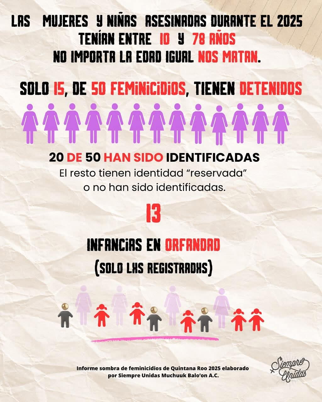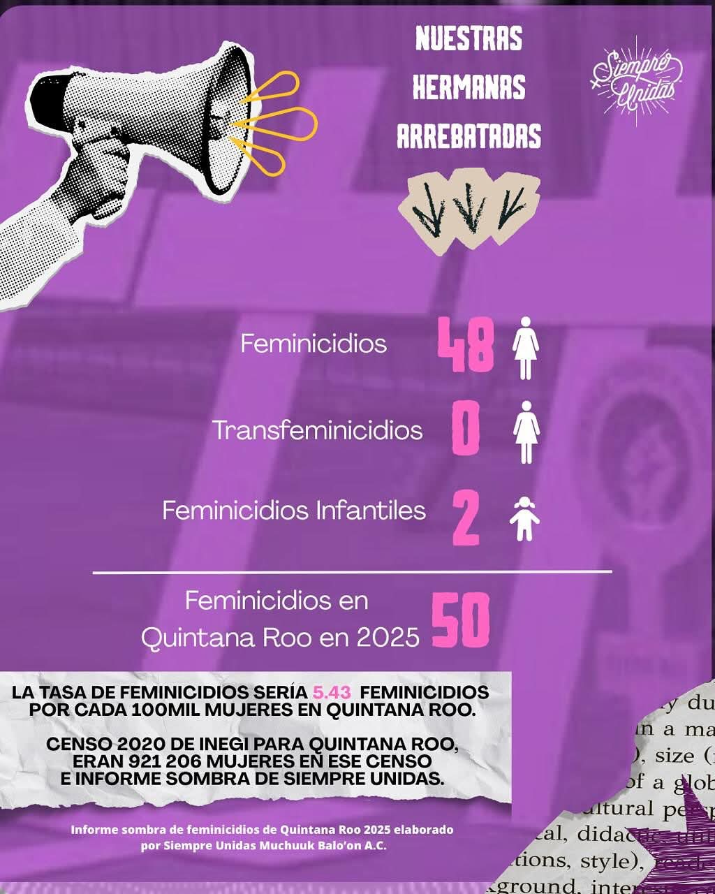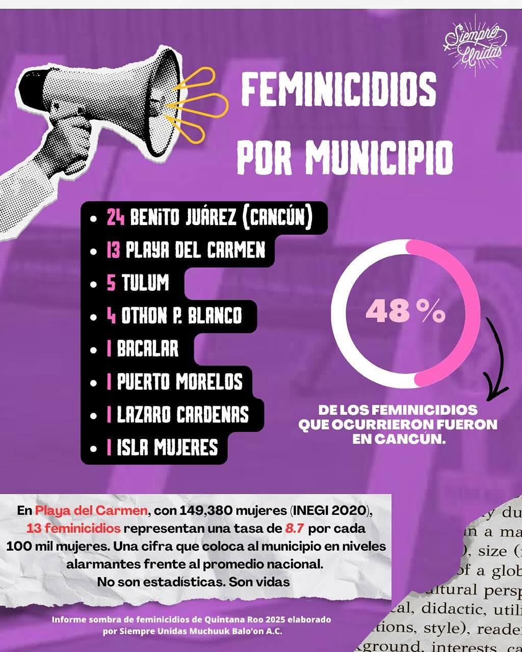 CHETUMAL | Quintana Roo ha mantenido el promedio de feminicidios al año desde el 2021, de acuerdo con el Quinto Informe Sombra de Feminicidios en la entidad del colectivo Siempre Unidas.