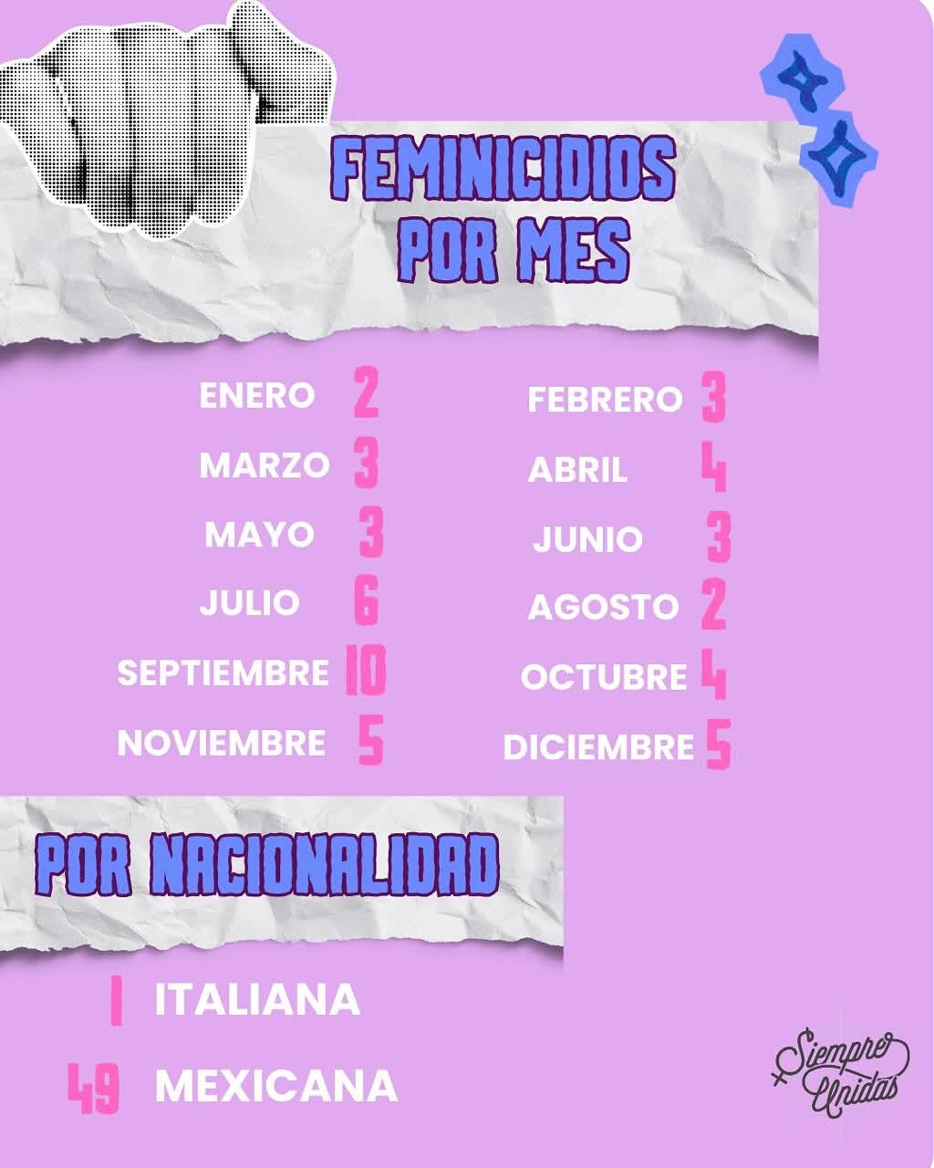 Previo a las marchas que diversos colectivos feministas realizarán el próximo domingo con motivo del Día Internacional de la Mujer, esta organización detalló en 2021 se registraron 53 casos; 52 al año siguiente; 63 en el 2023; 47 en el 2024 y 50 durante todo el 2025.
