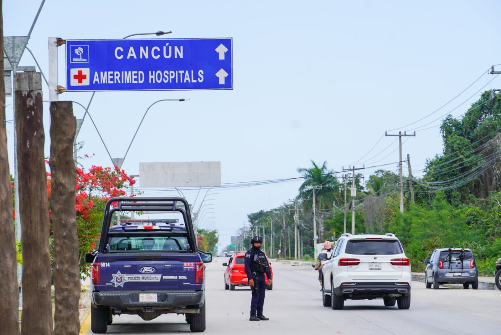 CANCÚN | SIM | Un fuerte operativo de seguridad se desplegó esta tarde en el tramo carretero Leona Vicario–Cancún, luego que sujetos armados incendiaron tres vehículos a la altura de la gasolinera Gas Imperial.