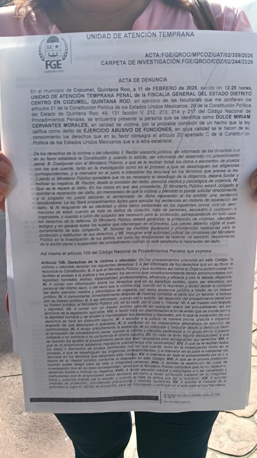 COZUMEL | Una mujer identificada como Dulce Cervantes Morales denunció públicamente un presunto cobro indebido presuntamente hecho por el delegado de la Agencia de Proyectos Estratégicos del Estado de Quintana Roo (Agepro) en Cozumel, Marco Antonio Mendoza Quijano, relacionado con la regularización de un predio ubicado en la zona conocida como “La Botella”.