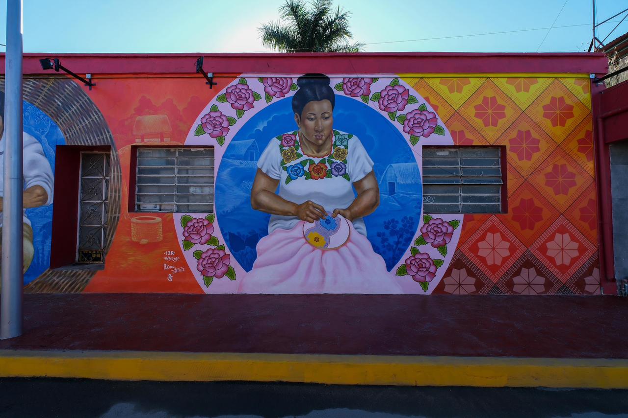 Los colores verde representan Sian Ka´an, los ecosistemas acuáticos, arrecifes de coral y el turismo comunitario; el rojo es la cultura y la historia. Se reflejan a los cruzoob, Tihosuco, los caudillos, la historia de la Santa Cruz, del chicle; a las mujeres en la historia que encarnan resistencia, sabiduría y liderazgo, como Rita Cetina, Elvia Carrillo Puerto, Rosa Torres, Felipa y María Uicab, junto con representaciones colectivas como parteras, curanderas, sacerdotisas y guerreras; las bordadoras, artesanas, leyendas como la Xtabay. Incluso hay un mural que refleja a Pedro Infante con su gran amigo Ruperto Prado.