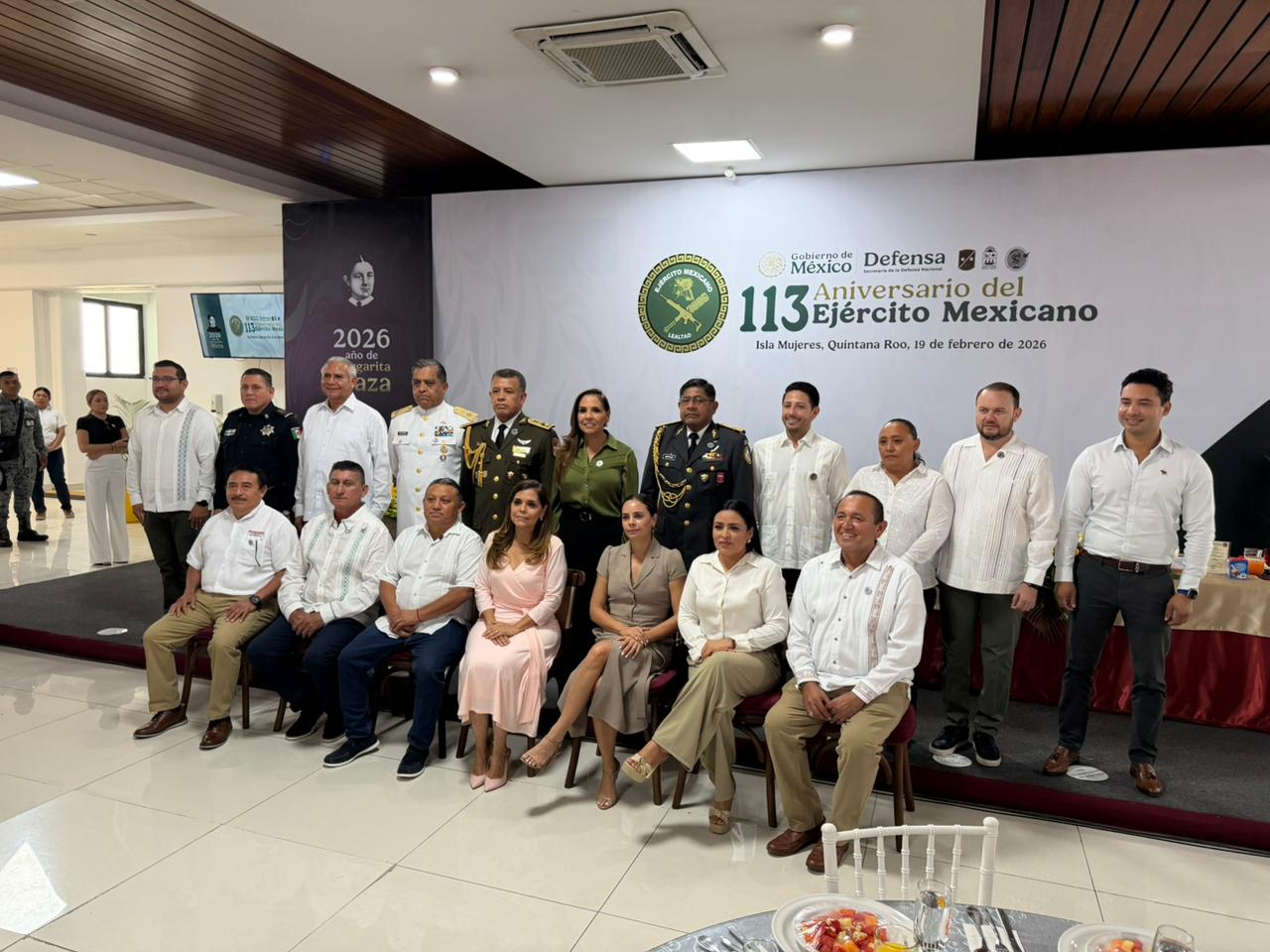 ISLA MUJERES | SIM | Autoridades civiles y militares conmemoraron el 113 aniversario del Ejército Mexicano con un acto cívico y un desayuno en las instalaciones del Cuartel General de la Guardia Nacional en la zona norte de Quintana Roo.