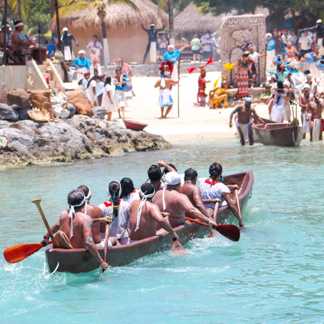 La Travesía Sagrada Maya, que se realiza tradicionalmente entre mayo y junio, es una recreación del antiguo peregrinaje que hacían los mayas desde Polé —el actual Xcaret— hasta Cozumel para venerar a Ixchel, diosa de la luna, la fertilidad y la medicina.