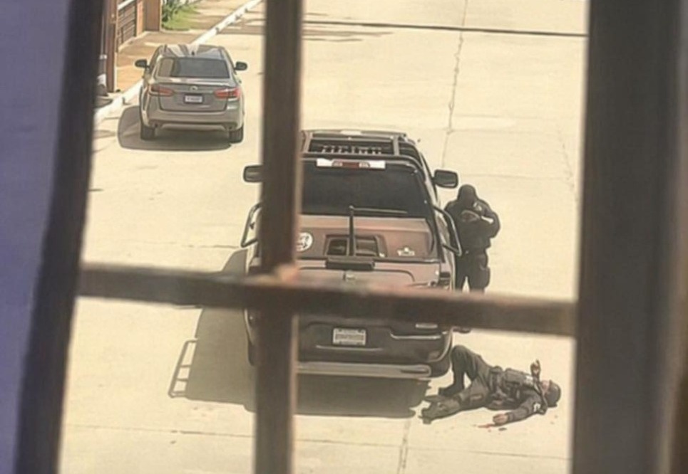 En redes sociales circula circula un video en donde se aprecia un elemento policiaco caído durante el enfrentamiento
