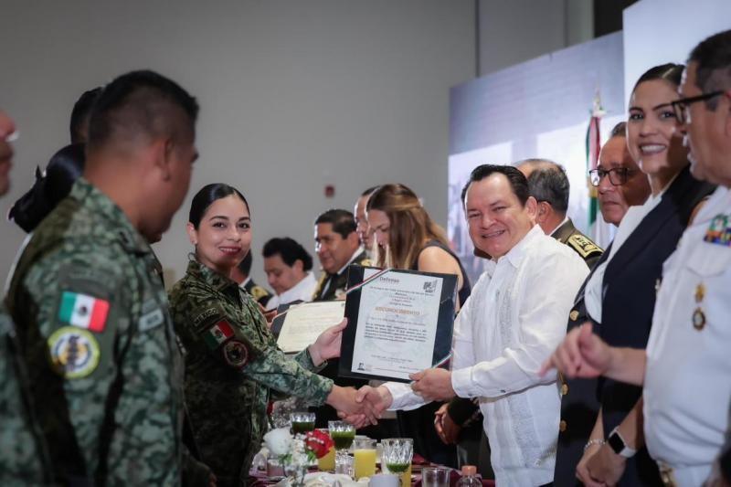 Asimismo, el mandatario destacó que Yucatán seguirá siendo un estado que respalda, respeta y reconoce a sus fuerzas armadas, y aprovechó para agradecer a la Presidenta de México, Claudia Sheinbaum Pardo, su apoyo permanente a Yucatán y la coordinación nacional que permite que las instituciones de seguridad trabajen con rumbo claro en beneficio de la población.